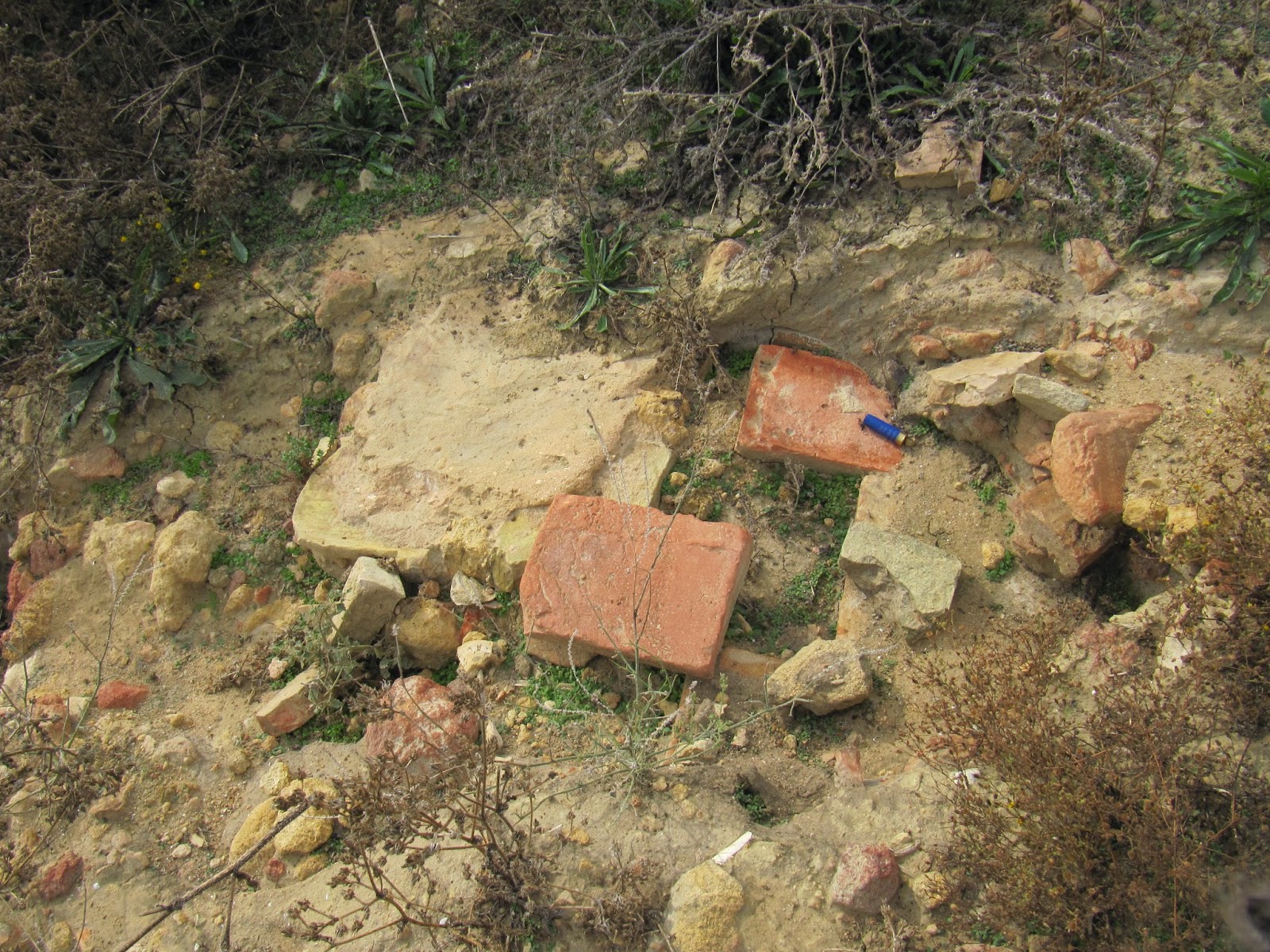 La mina de Alcalá es de origen romano y construida en el Alto Imperio, si bien ha sido remodelada y ampliada desde época árabe hasta la actualidad . Son también estos ladrillos los que habitualmente suelen encontrarse en restos de villas rurales romanas asociadas al núcleo poblacional de Alcaudete. Los hemos medido y registrado en yacimientos cercanos como los que se ven en las siguientes imágenes tomadas en las proximidades del cortijo abandonado de “Marileón”. En las fotos se aprecia una solería de ladrillos de medidas 29X22 cm. un gran ladrillo de 60X60 bipedalium, así como restos de tégulas y pavimento opus signinum. Estos restos están diseminados sobre una superficie cultivada de unas tres hectáreas sobre la colina y pertenecen a uno de los núcleos rurales romanos asociados a Alcaudete.