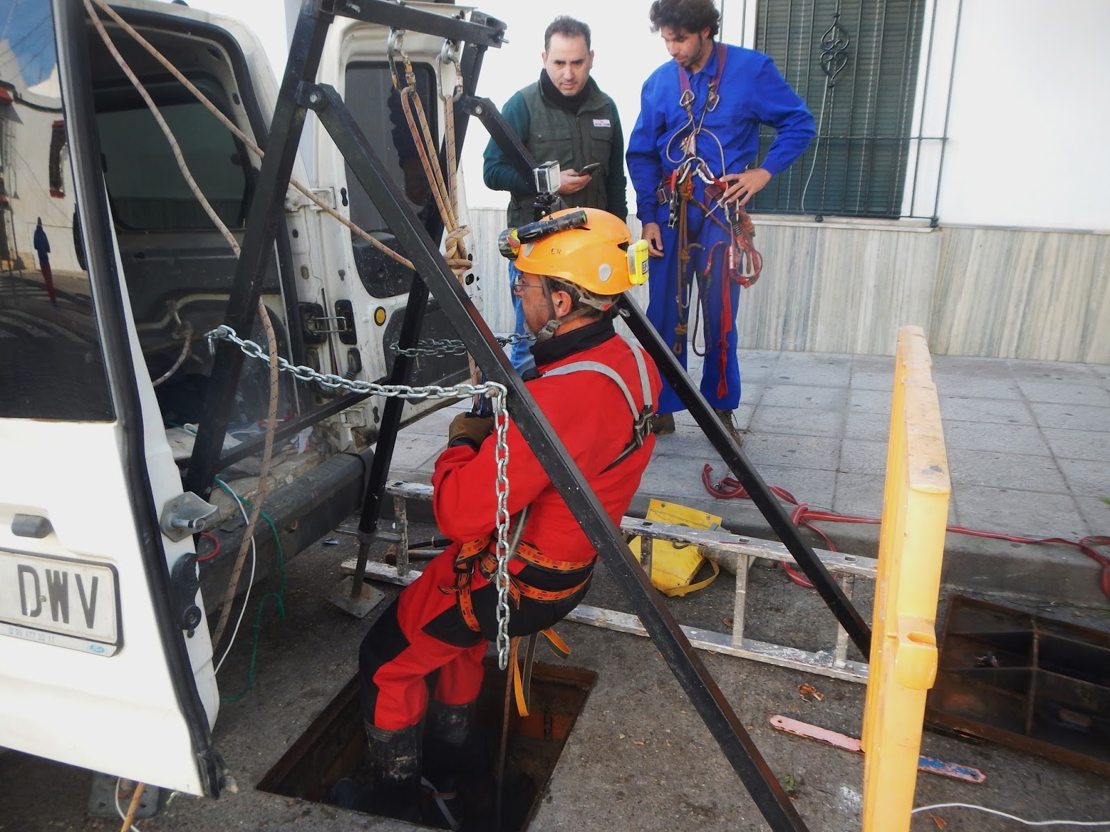 | Descendiendo al pozo que tiene una profundidad de 20 metros. |