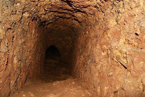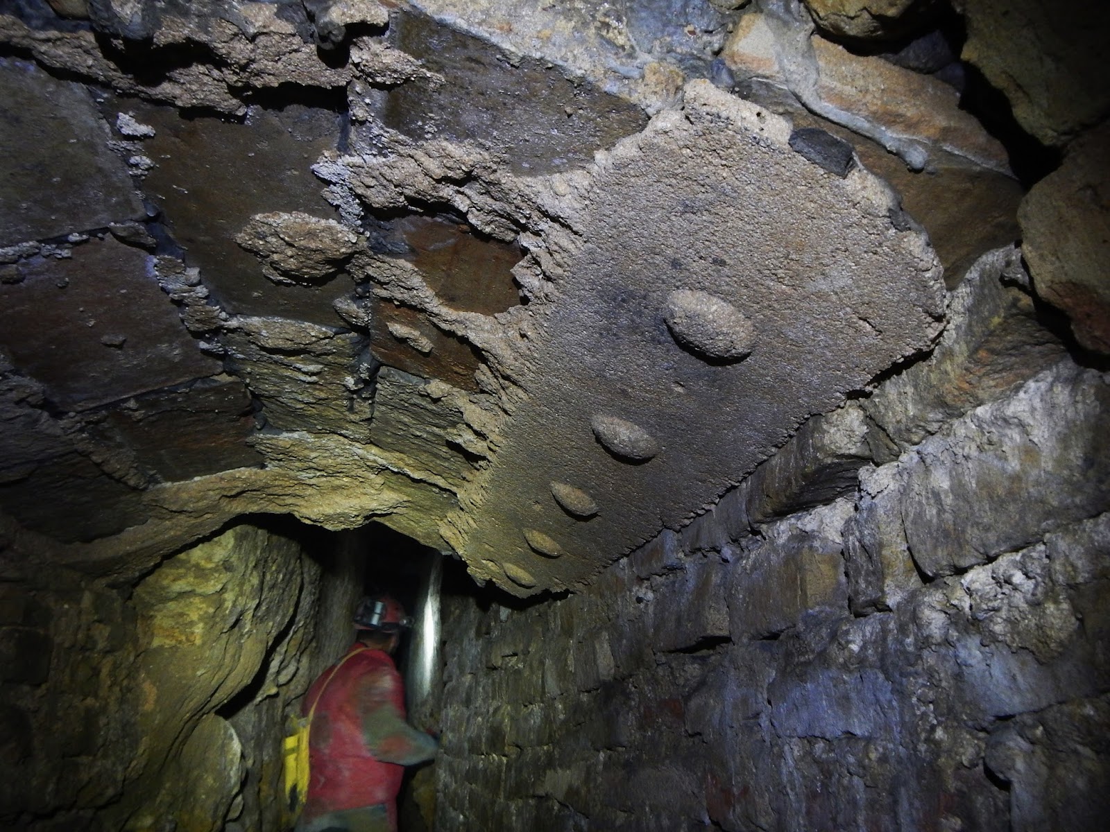 Imagen de la bóveda de ladrillos de la galería de bajada y que da acceso a la mina, donde se puede apreciar el encofrado hecho de de palos o cañas..